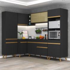 Cozinha Completa de Canto Veneza Gb Multimóveis Mp2050 com Armário e Balcão Preta