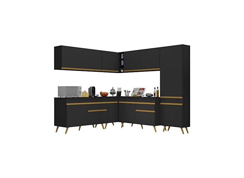 Cozinha Completa de Canto Veneza Gb Multimóveis Mp2067 com Armário e Balcão Preta
