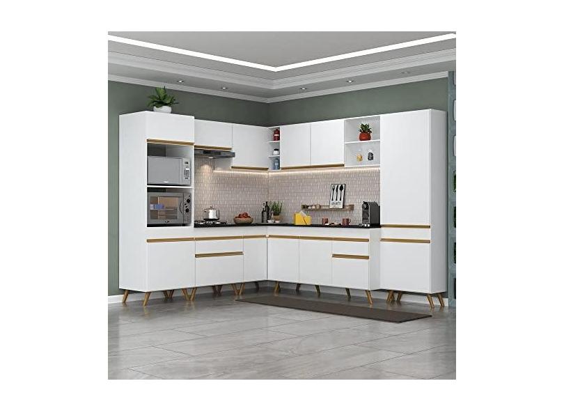 Cozinha Completa de Canto Veneza Gw Multimóveis Mp2047 com Armário e Balcão Branca