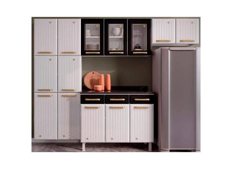 Cozinha Completa Diamante Portas De Vidro ( Armários Balcão Paneleiro) Branco/pretoTelasul