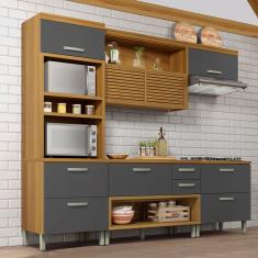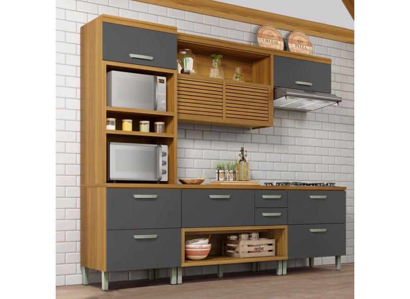 O menor preço encontrado no Brasil para Cozinha Completa em MDF Nesher Princesa com 6 Portas 4 Gavetas e 12 Prateleiras - Freijo/Grafite 270cm atualmente é R$ 2.799,64.