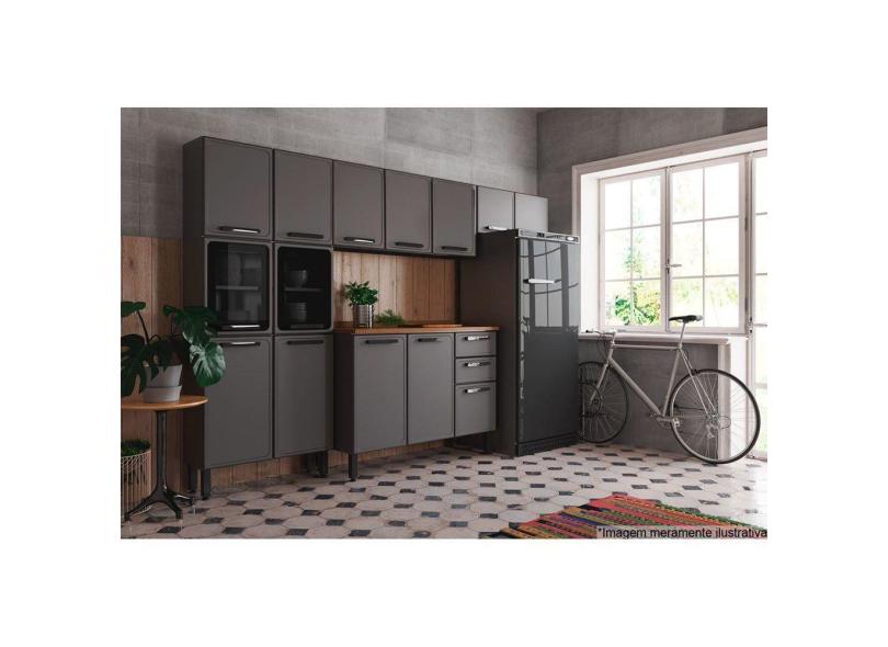 Cozinha Completa Estilo 4 Peças (2 Armários + 1 Balcão + 1 Paneleiro) C4p107 Cinza/grafite