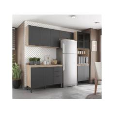 Cozinha Completa Firenze 11 Portas 2 Gavetas Avena Touch/Grafito - Dem