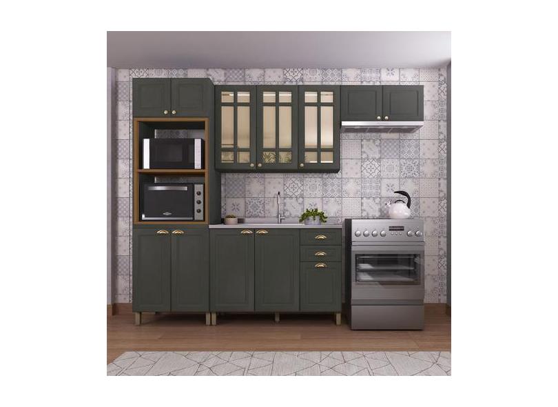 Cozinha Completa Firenze 12 Portas 2 Gavetas com Vidro 6171.132 Chumbo