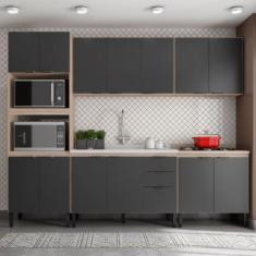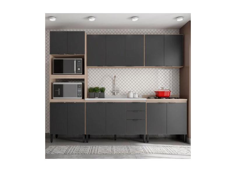 Cozinha Completa Firenze 14 Portas 2 Gavetas Avena Touch/Grafito - Dem