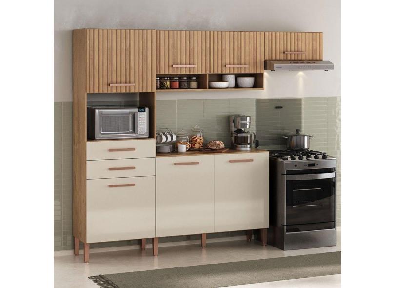 Cozinha Completa Fortaleza 7 Portas 2 Gavetas Ripado 3d Canelato Rustico/Natural/Off White - Atualle Móveis