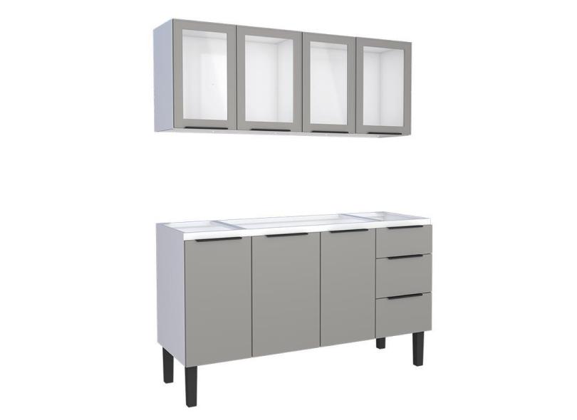 Cozinha Completa Gabinete Para Pia 150cm e Armário Aéreo Portas Vidro Jupter Cozimax Cinza Argila
