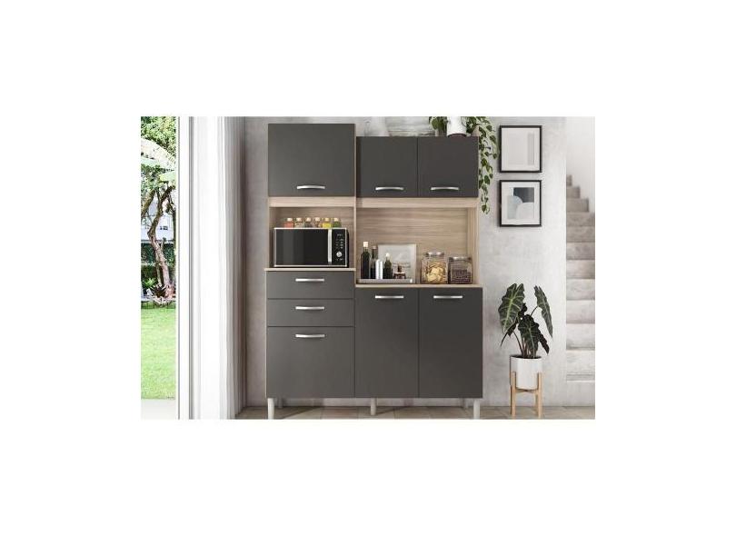Cozinha Completa Harmonia C/ 6 Portas E 2 Gavetas 132X183 Avena/Grafit