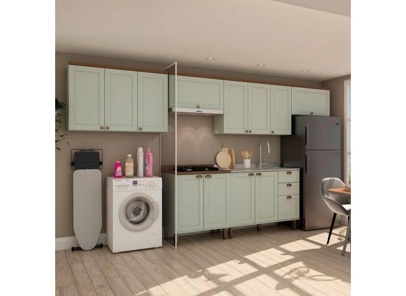 O menor preço encontrado no Brasil para Cozinha Completa Iluminata 12 Portas 3 Gavetas 100% Mdf Mint/ébano - Genialflex atualmente é R$ 2.413,90.