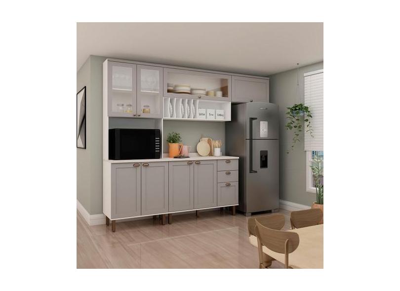 Cozinha Completa Iluminata 8 Portas 3 Gavetas 100% Mdf com Vidro Branc