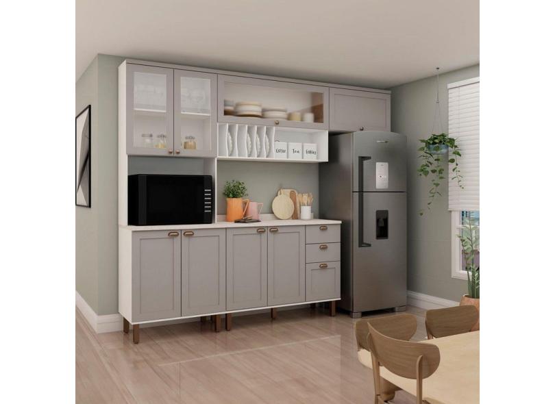 O menor preço encontrado no Brasil para Cozinha Completa Iluminata 8 Portas 3 Gavetas 100% Mdf com Vidro Branco/Marrom Claro/Mineral - Genialflex atualmente é R$ 1.982,33.