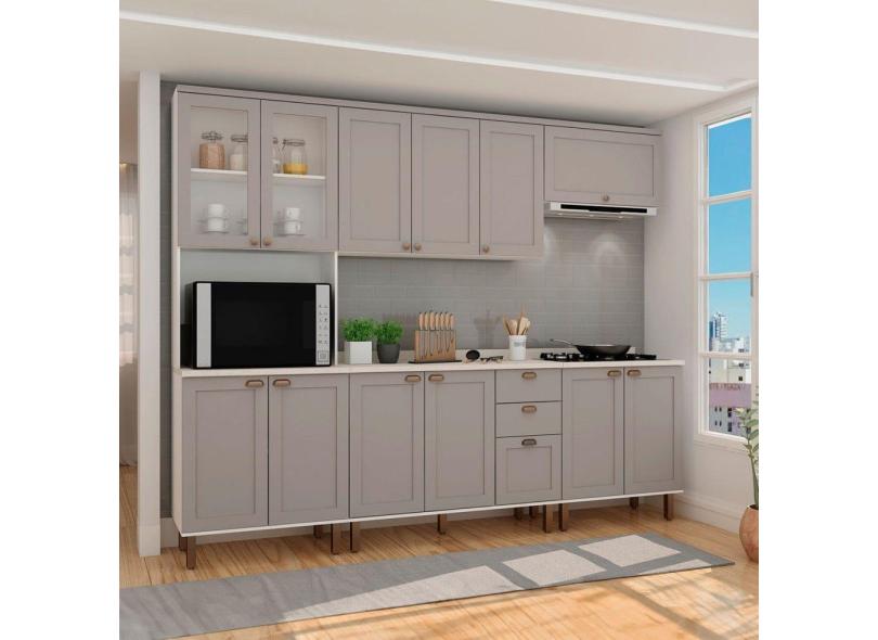 O menor preço encontrado no Brasil para Cozinha Completa Iluminata Ester 12 Portas 3 Gavetas 100% Mdf com Vidro Branco/Marrom Claro/Mineral - Genialflex atualmente é R$ 2.614,42.