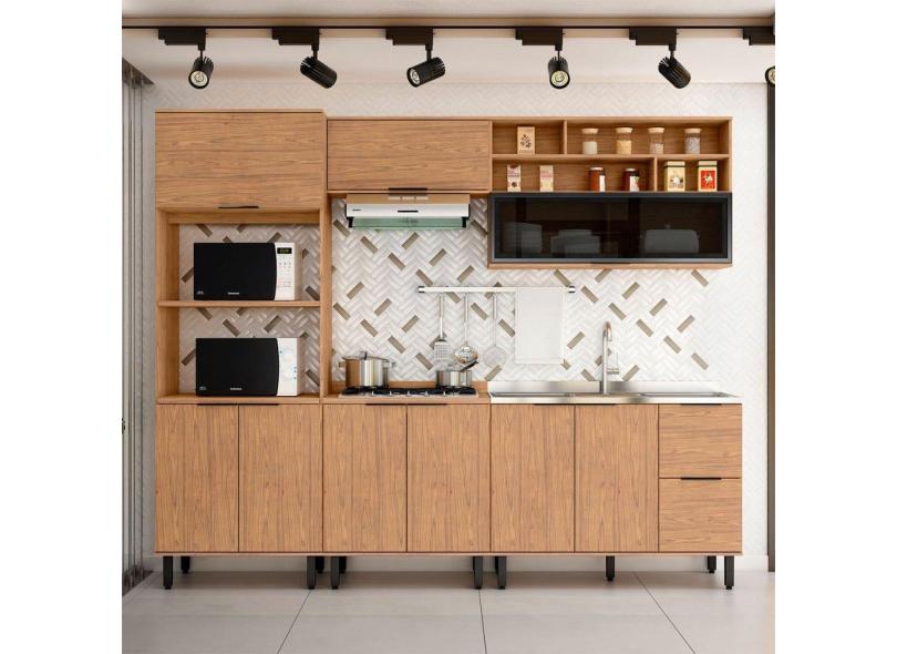 O menor preço encontrado no Brasil para Cozinha Completa Laura 9 Portas 3 Gavetas com Vidro 100% Mdf Freijo - Mx Móveis atualmente é R$ 1.651,93.