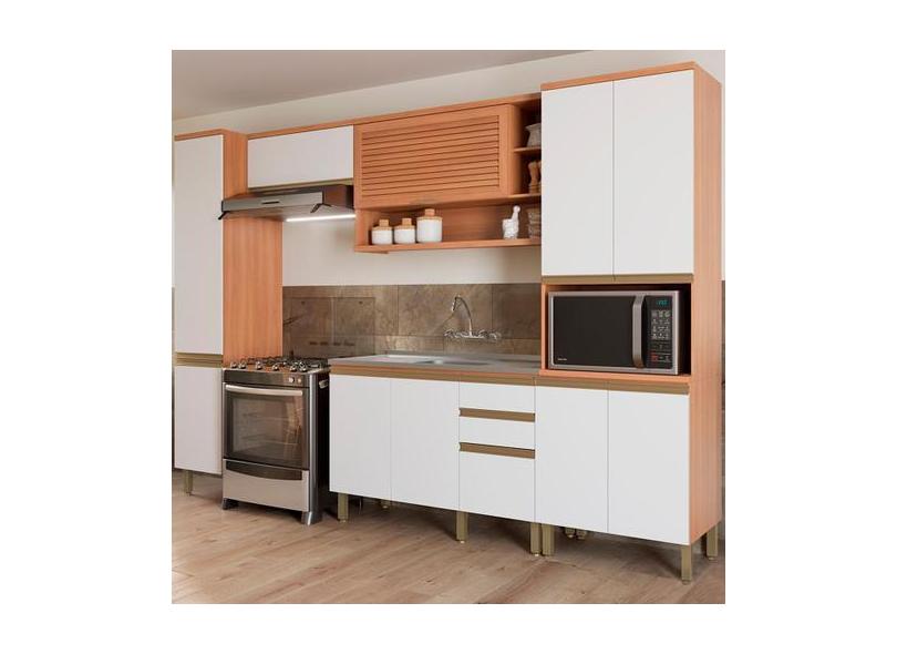 Cozinha Completa Macadâmia 10 Portas 3 Gavetas Freijó/Branco 914428 -
