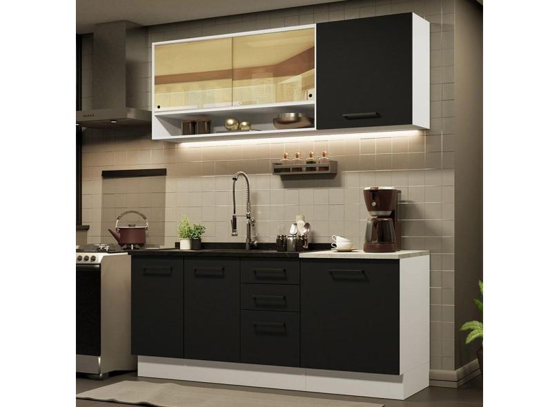 Cozinha Completa Madesa Agata 180002 com Armário e Balcão (Sem Tampo e Pia) - Branco/Preto