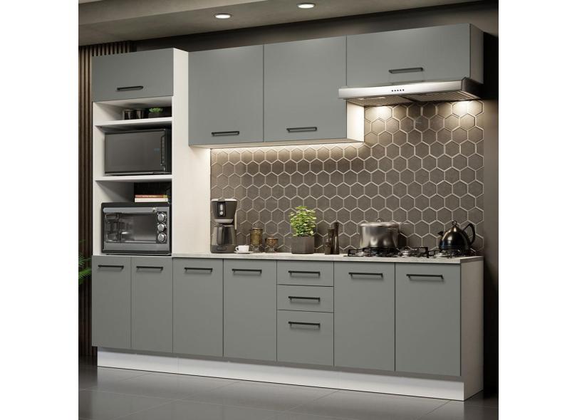 O menor preço encontrado no Brasil para Cozinha Completa Madesa Agata 270002 com Armário e Balcão (Com Tampo) - Branco/Cinza atualmente é R$ 2.015,99.