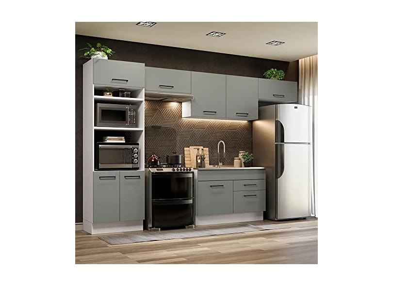 Cozinha Completa Madesa Agata 350001 com Armário e Balcão (sem Tampo e Pia) - Branco/cinza
