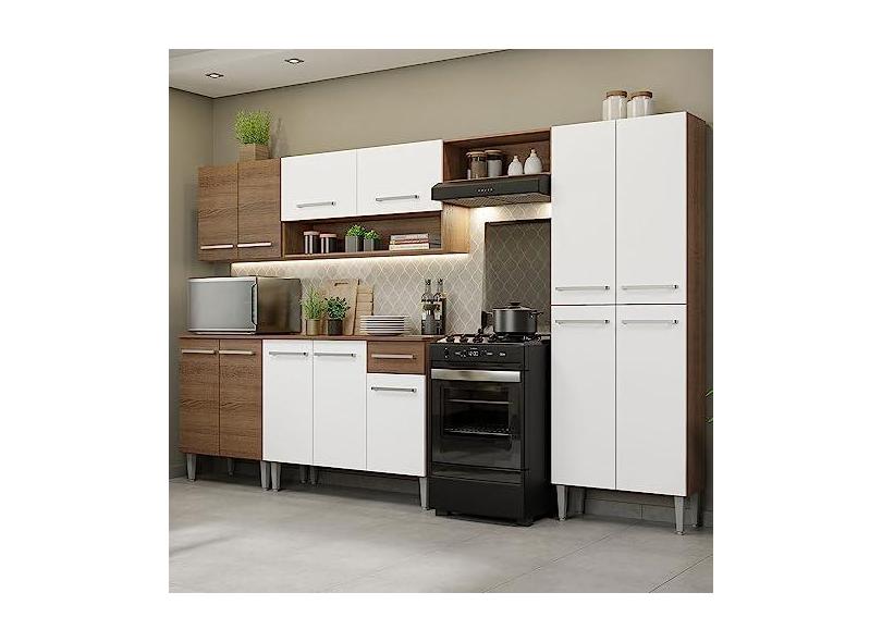 Cozinha Completa Madesa Emilly 293001 com Armário e Balcão - Rustic/branco