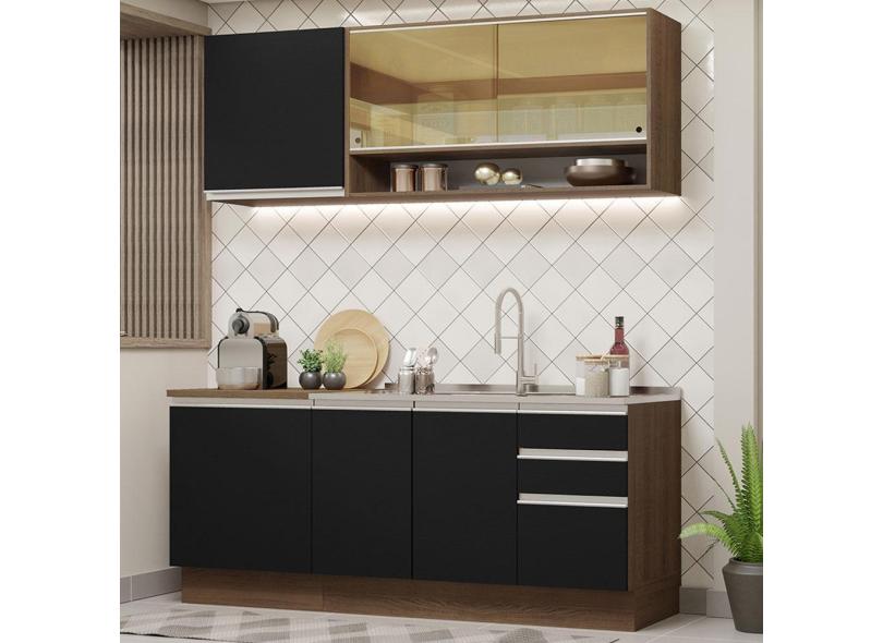 Cozinha Completa Madesa Glamy 180006 com Armário e Balcão (Sem Tampo e Pia) - Rustic/Preto