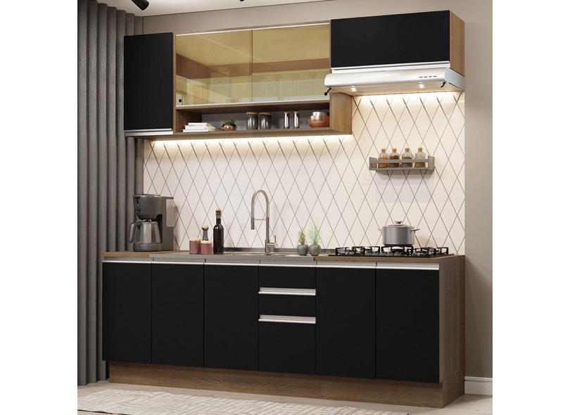 Cozinha Completa Madesa Glamy 240003 com Armário e Balcão (Sem Tampo e Pia) - Rustic/Preto
