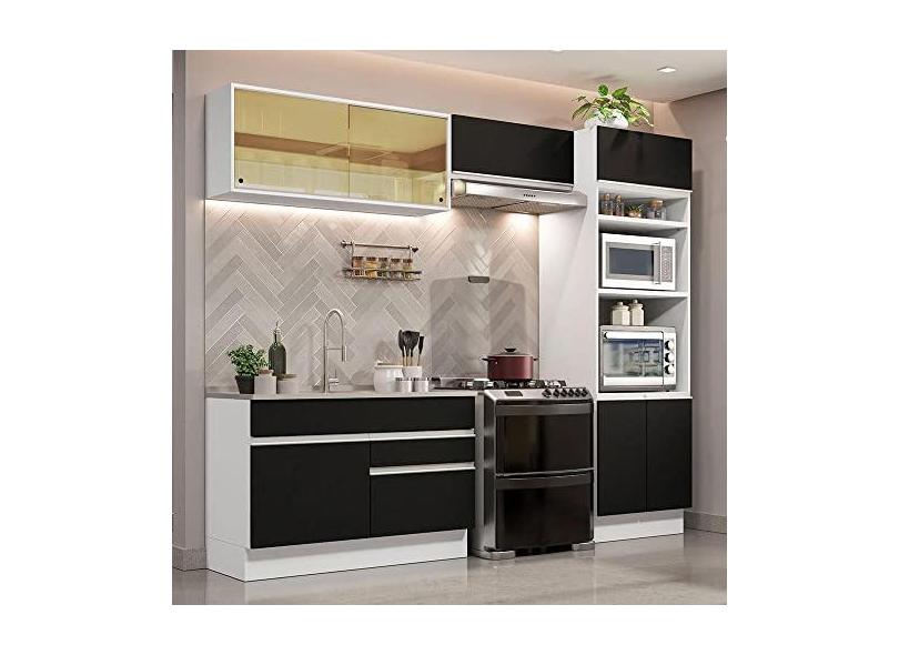 Cozinha Completa Madesa Glamy 270012 com Armário e Balcão (sem Tampo e Pia) - Branco/preto