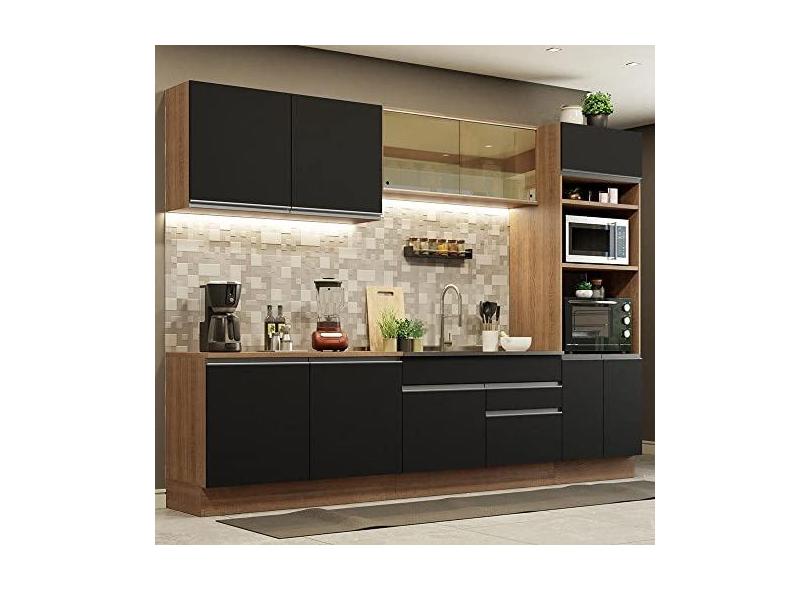 Cozinha Completa Madesa Glamy 310001 com Armário e Balcão (sem Tampo e Pia) - Rustic/preto
