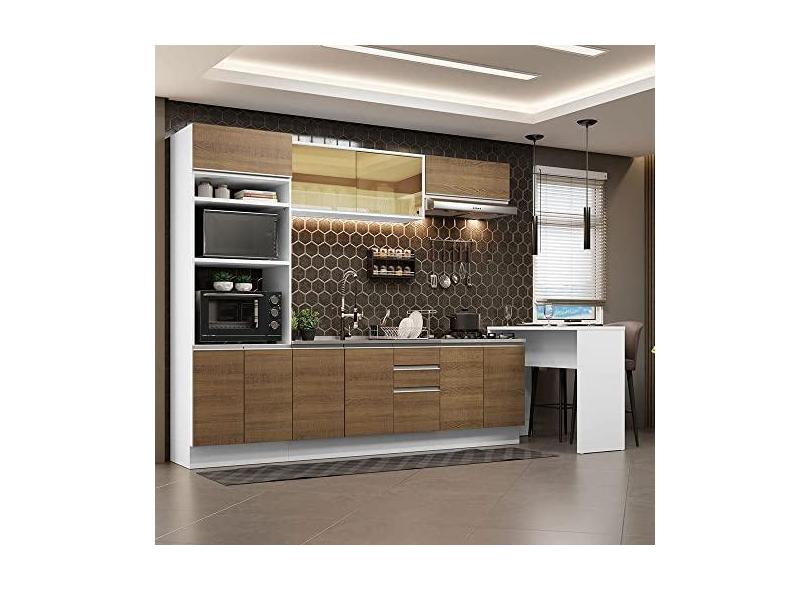 Cozinha Completa Madesa Glamy 315001 com Armário, Balcão e Bancada (sem Tampo e Pia) - Branco/rustic