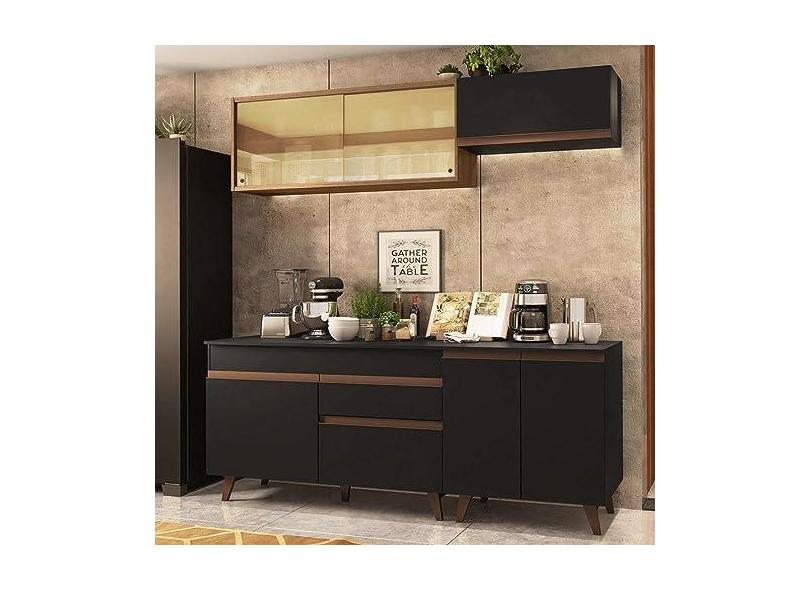 Cozinha Completa Madesa Reims 190001 com Armário e Balcão - Preto/Rustic