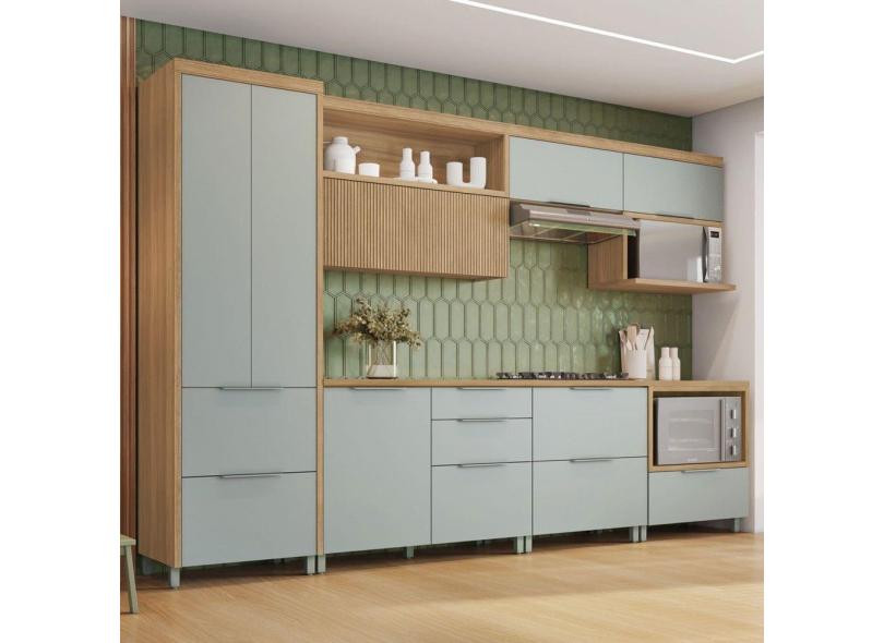 Cozinha Completa Marquesa 7 Portas 7 Gavetas Ripado 100% Mdf Natural/Verde - Nesher