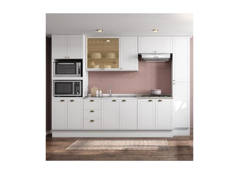 Cozinha Completa Milla Look 100% Mdf Armário e Balcão Branco Carraro