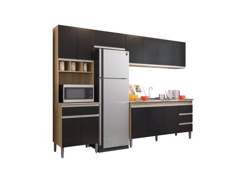 O menor preço encontrado no Brasil para Cozinha Completa Modulada 4 Peças Andréia 280 Cm Amendoa Preto Ajl Móv atualmente é R$ 1.241,55.