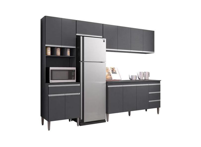 O menor preço encontrado no Brasil para Cozinha Completa Modulada 4 Peças Andréia 280 cm Cinza Fosco AJL Móvei atualmente é R$ 1.482,33.