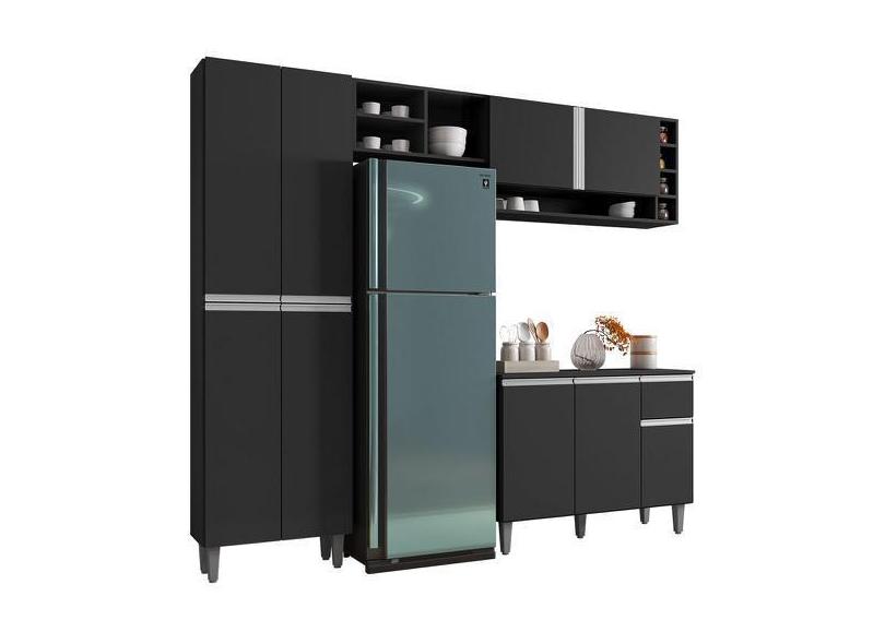O menor preço encontrado no Brasil para Cozinha Completa Modulada 4 Peças Vanessa Preto Fosco Ajl Móveis atualmente é R$ 1.060,01.