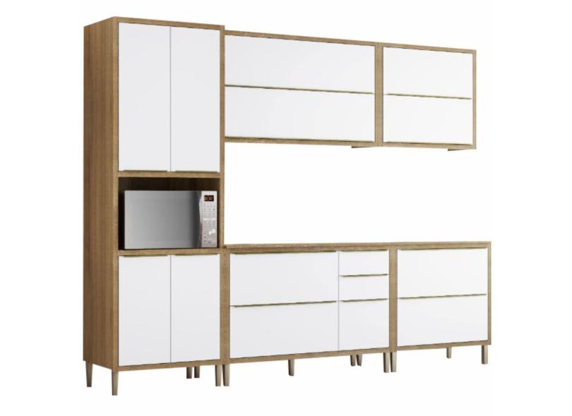 Cozinha Completa Modulada 5 peças Aramóveis Paola 13 portas 02 gavetas Carvalho Branco