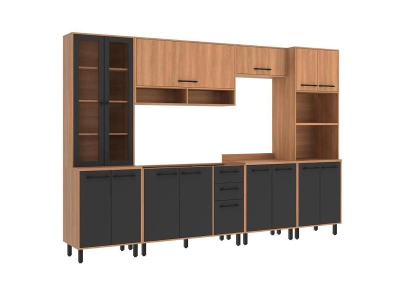 Cozinha Completa Modulada 6 Peças Com Gabinete Para Pia Havana Multimóveis Cr20319 Rovere/grafite