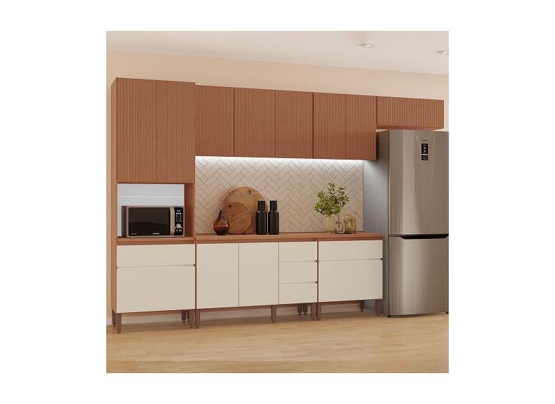 Cozinha Completa Modulada Raissa 100% Mdf Com 1 Balcão 12 Portas E 5 G