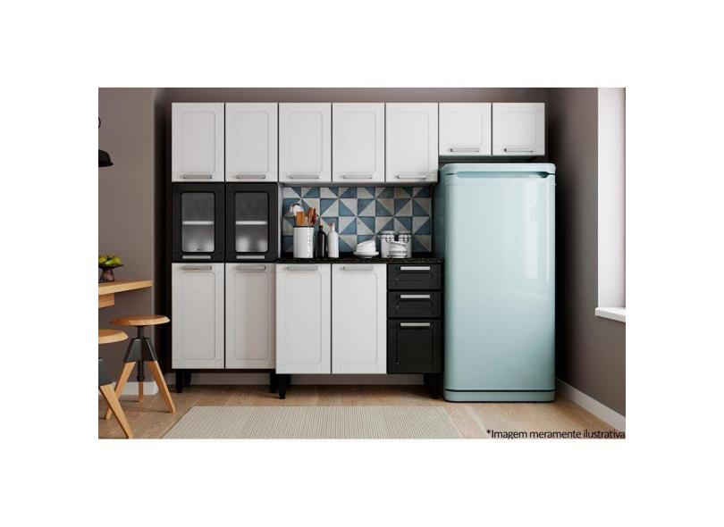 Cozinha Completa Múltipla 4 Peças (2 Armários + 1 Balcão + 1 Paneleiro) C4p85 Branco/preto