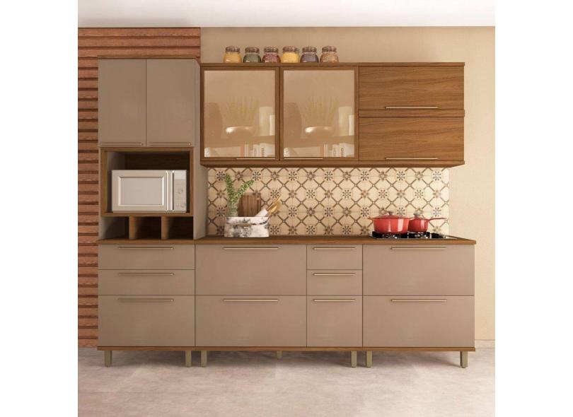 O menor preço encontrado no Brasil para Cozinha Completa Munique 10 Portas 6 Gavetas com Vidro Freijo/Camurça - Indekes atualmente é R$ 3.210,13.