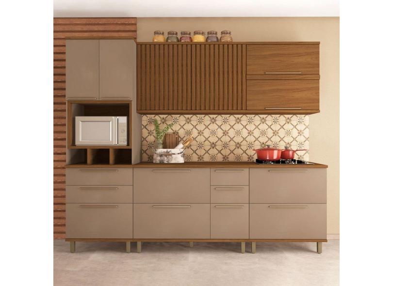Cozinha Completa Munique 10 Portas 6 Gavetas Ripado Freijo/Camurça - Indekes