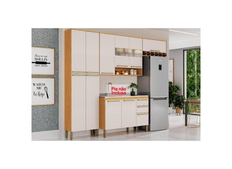 Cozinha Completa Nápoli Prime 4 Peças (2Aéreos+1Balcão+1Paneleiro) C4P66 Sevilha/Branco - Ronipa