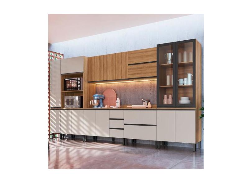 O menor preço encontrado no Brasil para Cozinha Completa Plátano 16 Portas 5 Gavetas Montana/Fumê - Quiditá Mó atualmente é R$ 4.988,90.