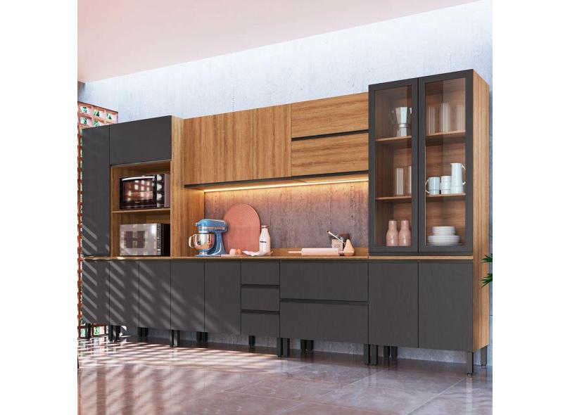 Cozinha Completa Plátano 16 Portas 5 Gavetas Montana/Grafite - Quidita Móveis