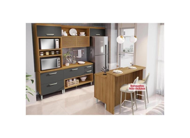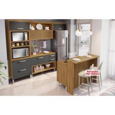Cozinha Completa Princesa 5 Peças (1Aéreo+2Balcões+1Paneleiro+1Ilha) C6P61 Freijo/Grafite - Nesher