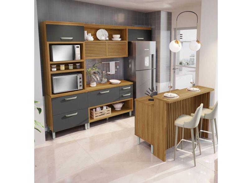 O menor preço encontrado no Brasil para Cozinha Completa Princesa 6 Portas 5 Gavetas com Ilha Ripado 100% Mdf Freijó/Grafite - Nesher atualmente é R$ 3.974,92.