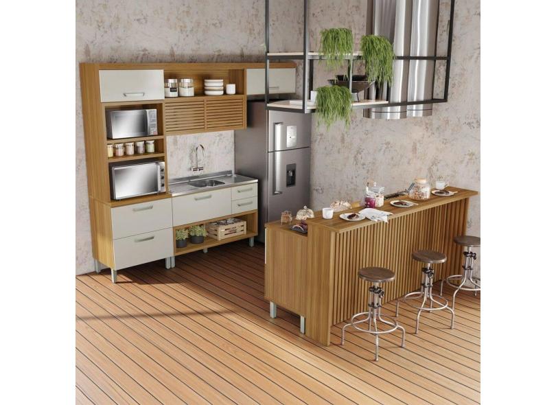 Cozinha Completa Princesa 6 Portas 8 Gavetas com Ilha Ripado 100% Mdf Freijó/Off White - Nesher