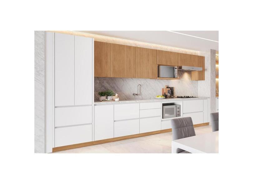 O menor preço encontrado no Brasil para Cozinha Completa Rainha 19 Peças (5 Armários + 5 Balcões + 1 Paneleiro + 8 Complementos) C6P76 Branca/Nature - Nesher atualmente é R$ 5.921,19.