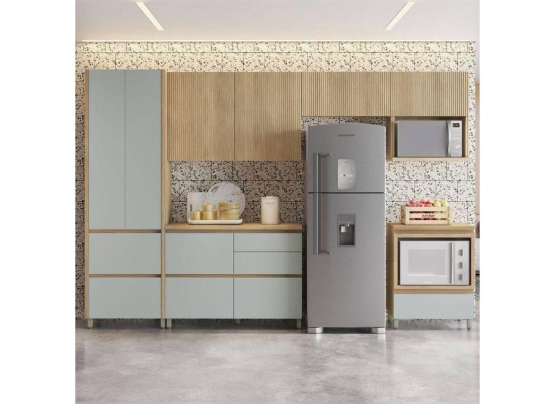 Cozinha Completa Rainha 7 Portas 7 Gavetas Ripado 100% Mdf Natural/Verde - Nesher