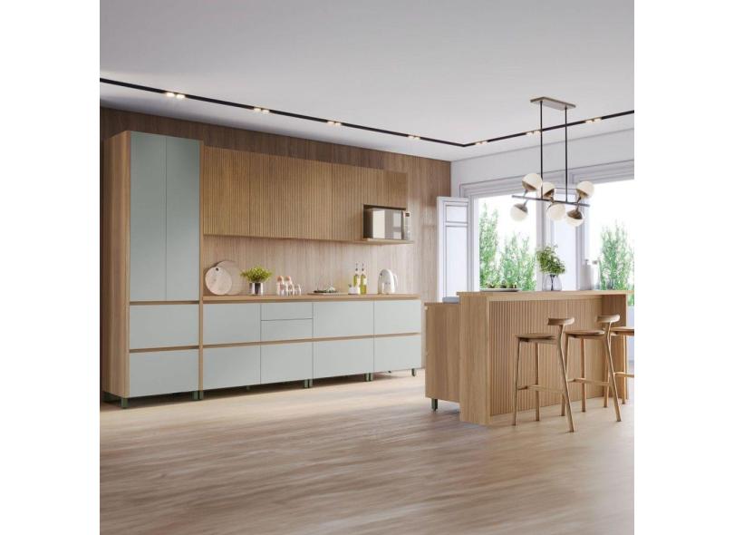 Cozinha Completa Rainha Gourmet 12 Portas 12 Gavetas com Ilha Ripado 100% Mdf Natural/Verde - Nesher