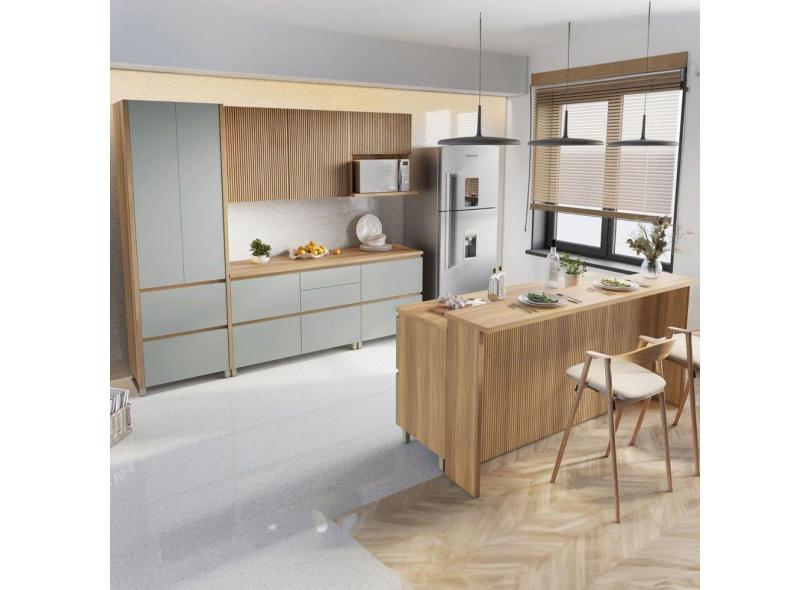 Cozinha Completa Rainha Gourmet 9 Portas 12 Gavetas com Ilha Ripado 100% Mdf Natural/Verde - Nesher