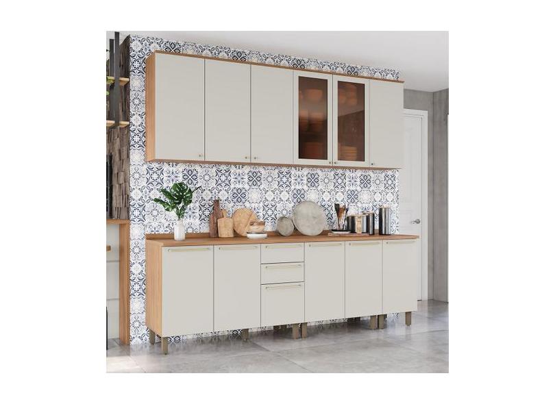Cozinha Completa Requinte 12 Portas 2 Gavetas com Vidro Nature/Areia -